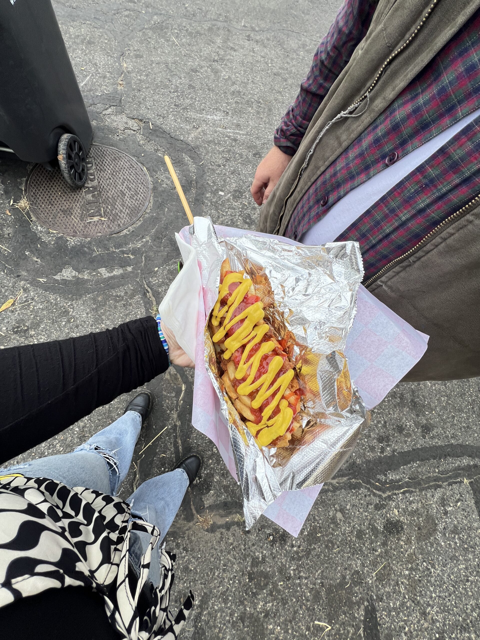 Salsicha empanada em uma massa levemente adocicada de milho e frita até ficar crocante. Popular na Coreia e nos EUA, pode vir com queijo, açúcar por fora ou coberturas como ketchup e mostarda.