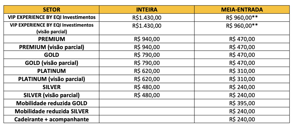 A venda de ingressos será realizada em etapas. A pré-venda para clientes EQI Investimentos acontece de 16 a 29 de março, com ingressos disponíveis a partir das 10h do dia 16 na bilheteria física do Pátio Batel e também pela plataforma Eventim. Em seguida, ocorre a pré-venda exclusiva para membros do Cirque Club, no dia 30 de março, das 10h às 23h59, com vendas apenas online (a inscrição no clube é gratuita pelo site oficial). Já a venda geral começa no dia 31 de março, às 10h, tanto na bilheteria física do Pátio Batel quanto pela Eventim. Os valores variam de R$ 240 a R$ 1.430, dependendo do setor escolhido.